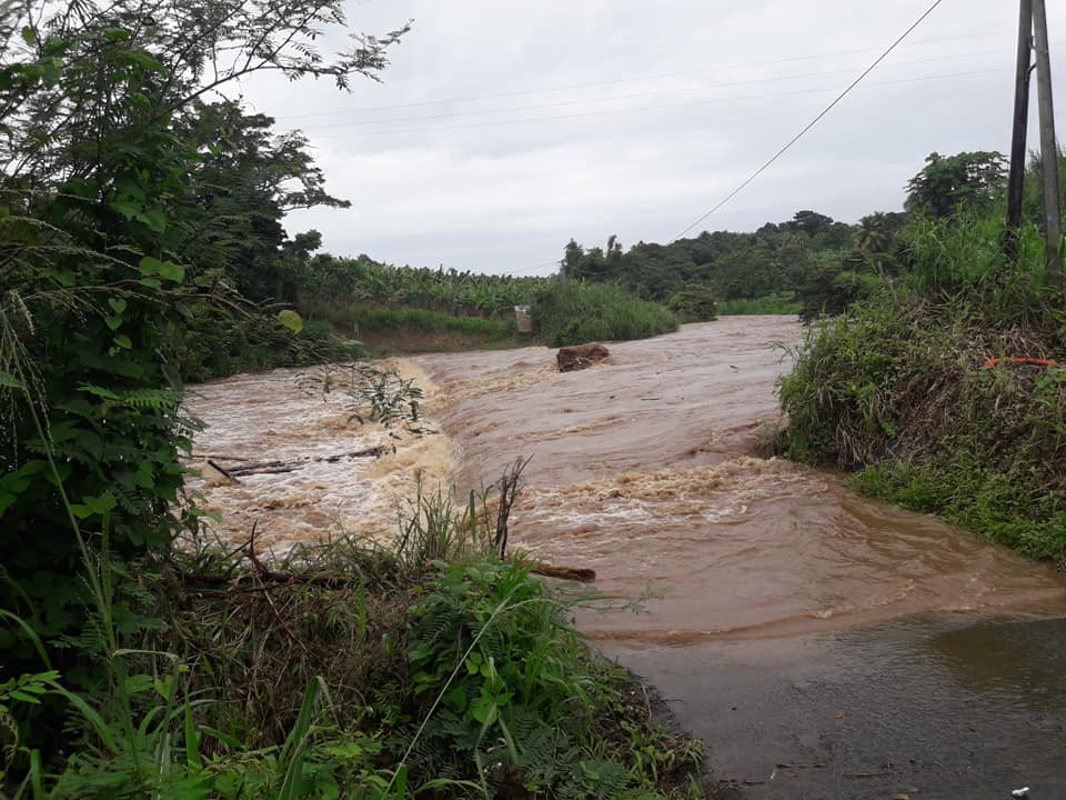 La rivière de la Presqu’île à Saint-Joseph est en crue. En effet, de fortes pluies ont touché une bonne partie de la Martinique, ce mercredi matin dans un secteur situé entre Saint-Pierre, Saint-Joseph, le Robert et Trinité. En effet, les forts cumuls de précipitation estimés sont de l’ordre de 35 à 45 mm.