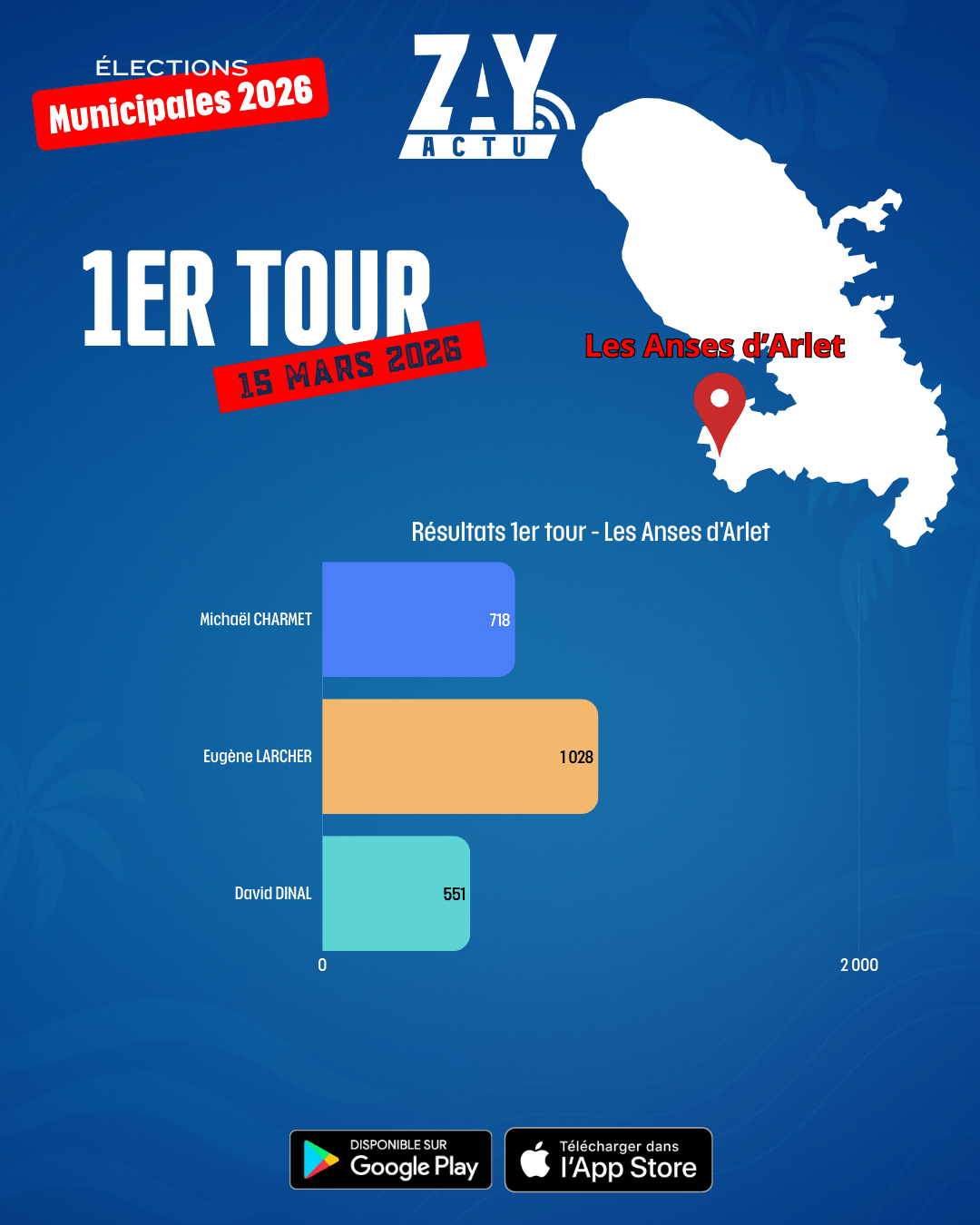 Aux Anses-d’Arlet, aucun candidat n’obtient la majorité absolue au premier tour. Les trois candidats restent qualifiés pour le second tour.
