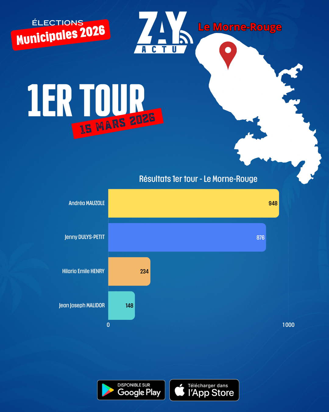 Au Morne-Rouge, aucun candidat n’a obtenu la majorité absolue au premier tour. La commune se dirige vers une triangulaire au second tour.