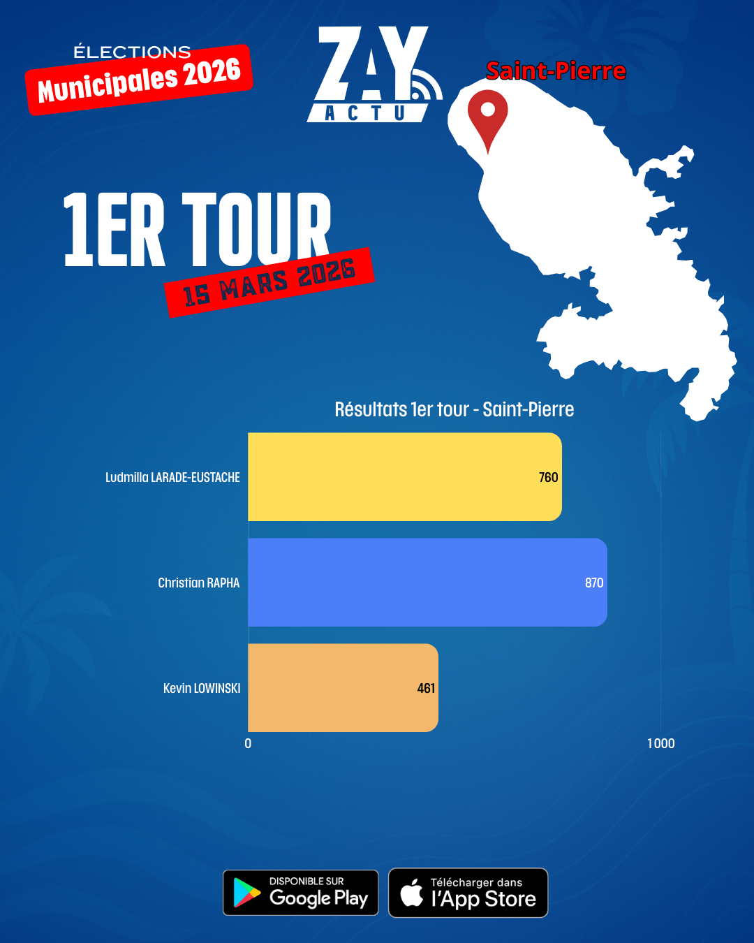 À Saint-Pierre, aucun candidat n’est élu dès le premier tour. La commune se dirige vers une triangulaire au second tour.
