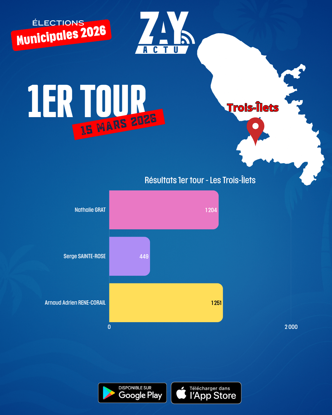 Aux Trois-Îlets, aucun candidat n’obtient la majorité absolue au premier tour. La commune se dirige vers un second tour.