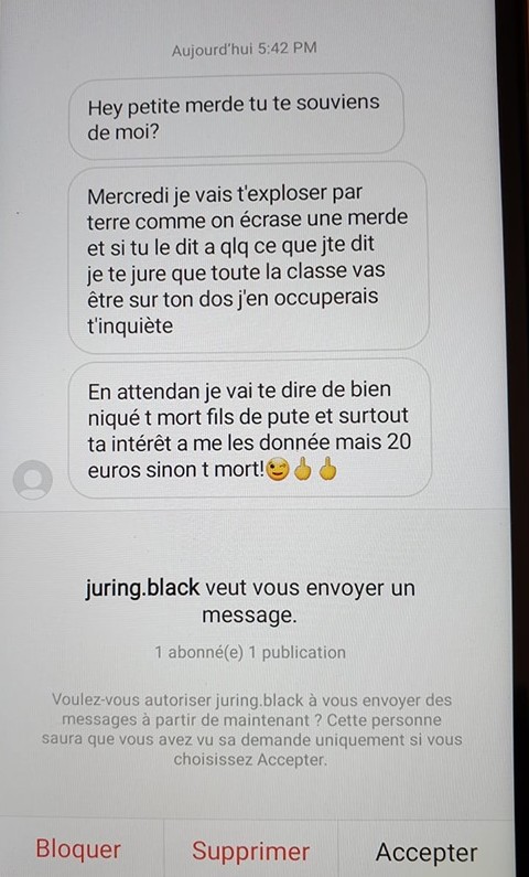 C’est la rentrée scolaire pour beaucoup d’enfant en France et dans les Dom-Tom. Malheureusement, pour certains, cette rentrée scolaire rime avec harcèlement à l’école. En effet, juste avant sa rentrée scolaire, un enfant a reçu un message sur un réseau social avec le menaçant de « l’exploser par terre comme on écrase une merde… »