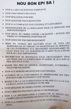 Dans un tract de 18 points, ils dénoncent l’empoisonnement au chlordécone, l’apologie de crimes contre l’humunité, les discriminations à l’embauche et bien d’autres encore…