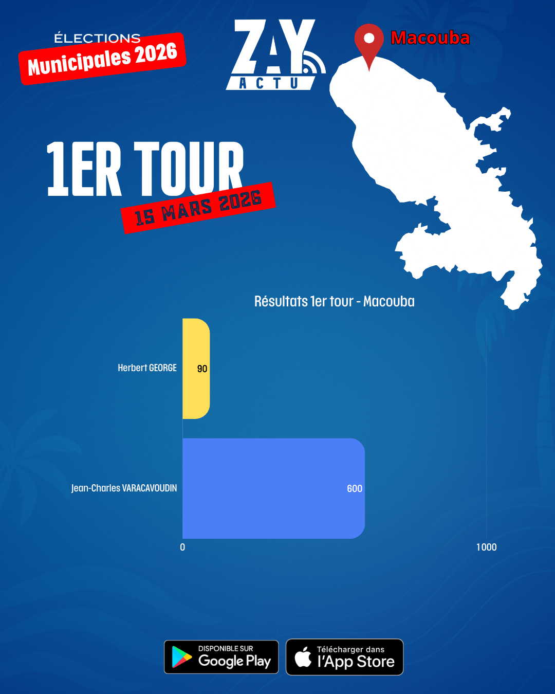 Trois candidats sont donc qualifiés pour le second tour dans cette commune du sud de la Martinique.