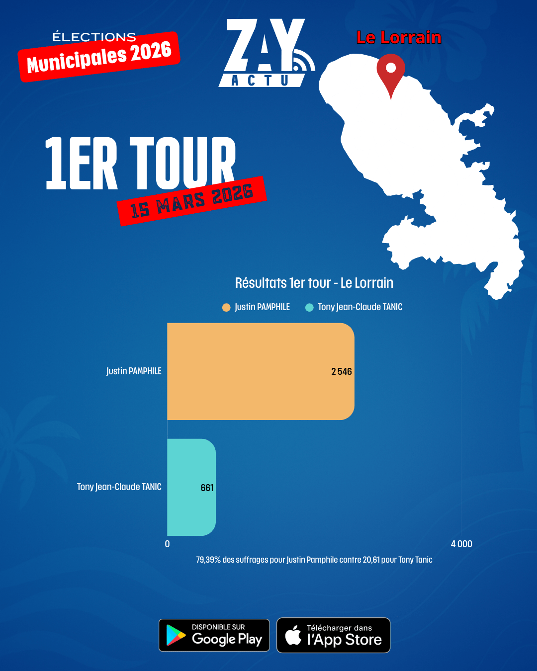Au Lorrain, le maire sortant Justin Pamphile est réélu avec 2 546 voix, soit 79,39 % des suffrages exprimés.