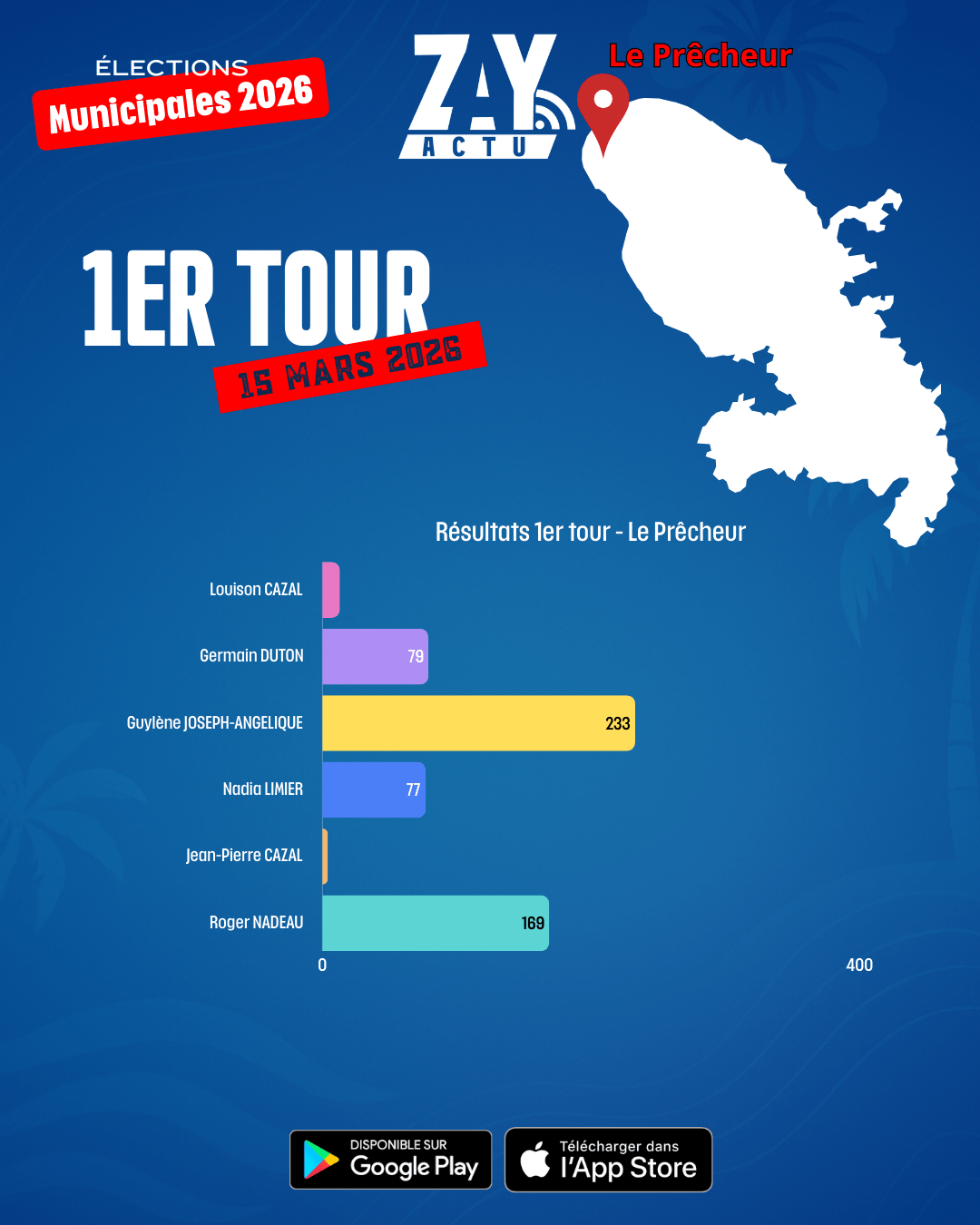 Au Prêcheur, aucun candidat ne franchit la majorité absolue au premier tour. La commune se dirige donc vers un second tour.
