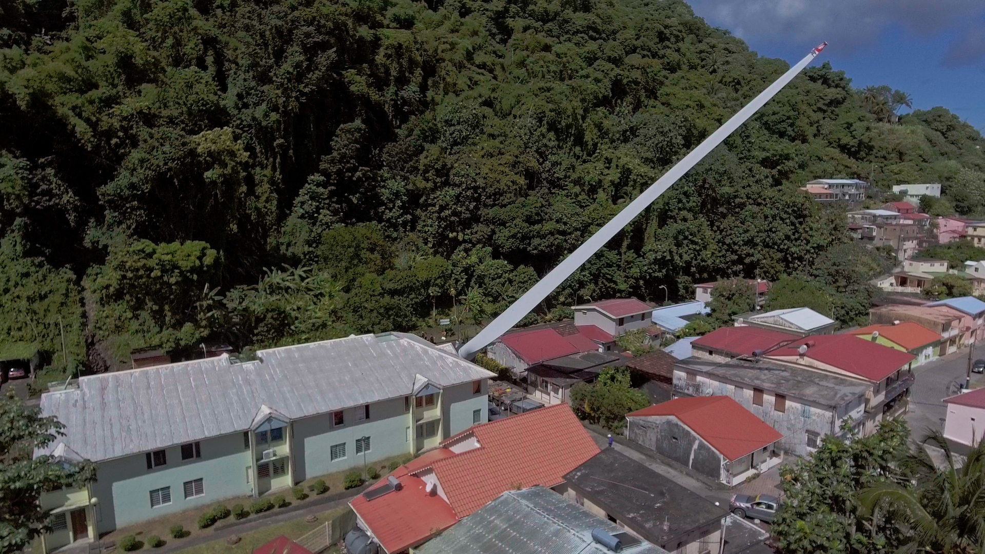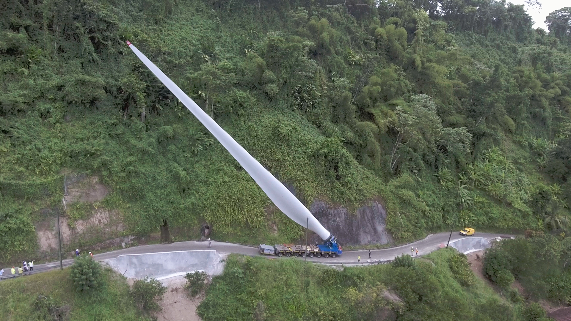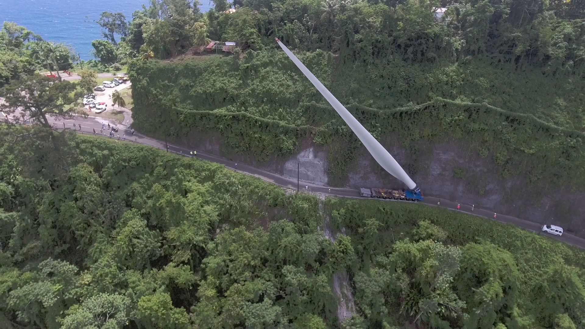Hier avait lieu à Grand-Rivière le transport d’une pale d’éolienne à Grand-Rivière. Un convoi exceptionnel impressionnant à voir en images et vidéo.