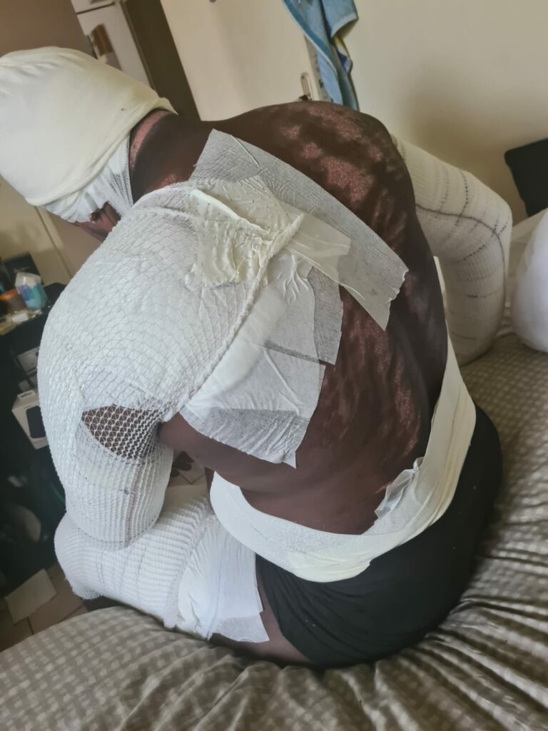 Pris en charge par des témoins avant l’arrivée du SAMU, il est transporté d’urgence vers l’hôpital Pierre-Zobda-Quitman, puis transféré à Mangot Vulcin. Le diagnostic est lourd : brûlures au second et troisième degré sur près de 40 % du corps, nécessitant plusieurs greffes, notamment des cuisses vers le dos et les bras.