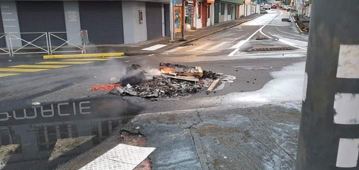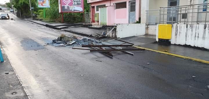 Bombes lacrymogènes, bombes assourdissantes et jets de projectiles ont été échangés durant une bonne partie de la nuit. Des incendies se sont déclarés un peu partout à Fort-de-France, notamment dans le hall d’EDF à Fort-de-France. Au lendemain de ces violents affrontements, c’est tout un centre-ville qui s’est réveillé avec la gueule de bois. Le centre garde les stigmates de cette nuit de violence comme le montre ces photos.