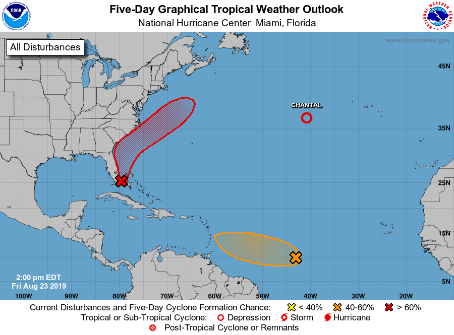L’onde tropicale qui se situe à environ 1 300 kilomètres de l’arc antillais continue de montrer des signes d’organisation. Le NHC augmente ses prévisions et lui donne 40% de chance de se transformer en un phénomène cyclonique.