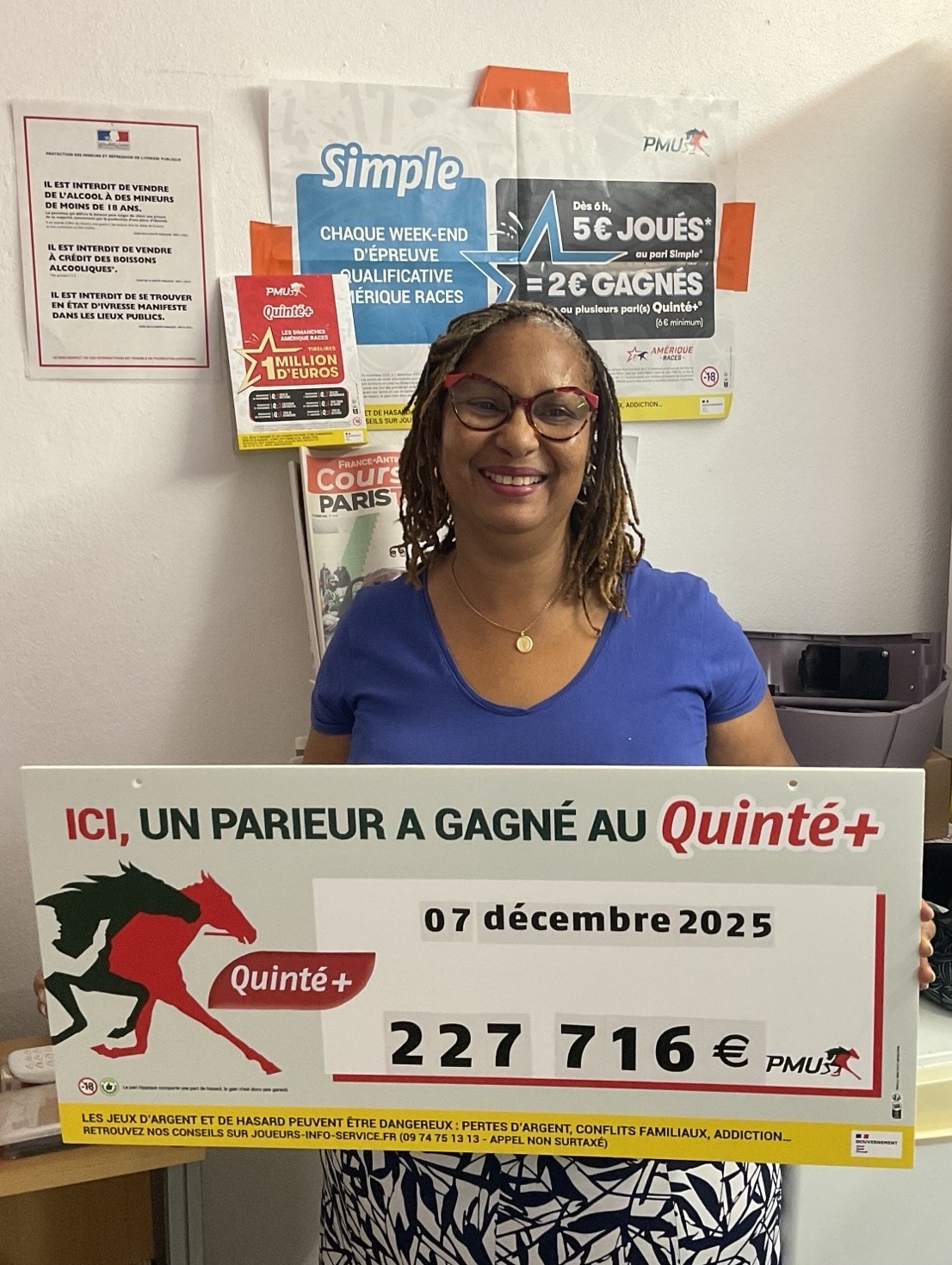 Un heureux événement pour le PMU en Martinique. Dimanche 7 décembre, un parieur a remporté la somme de 227 716 € en jouant au Quinté+. Le ticket gagnant a été validé dans le point de vente « GFN Opportunity », situé à Fort-de-France.