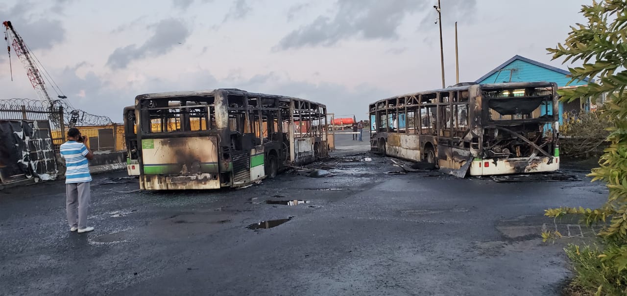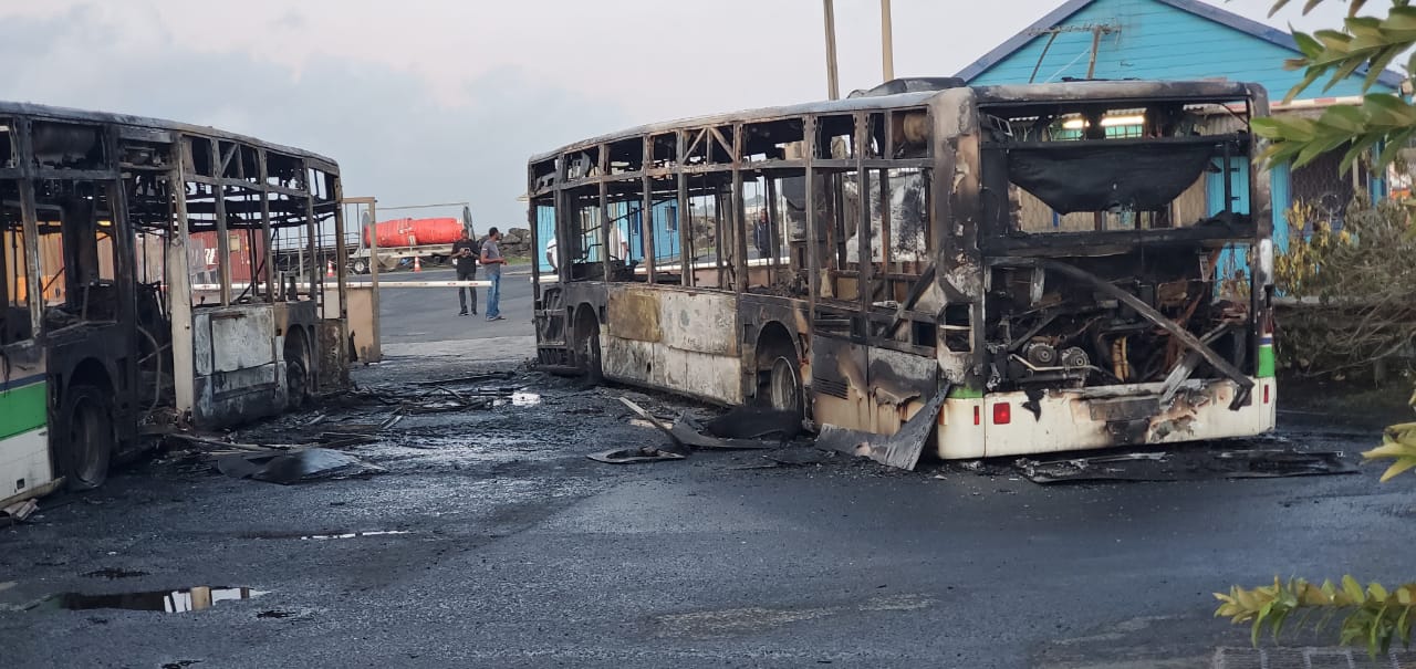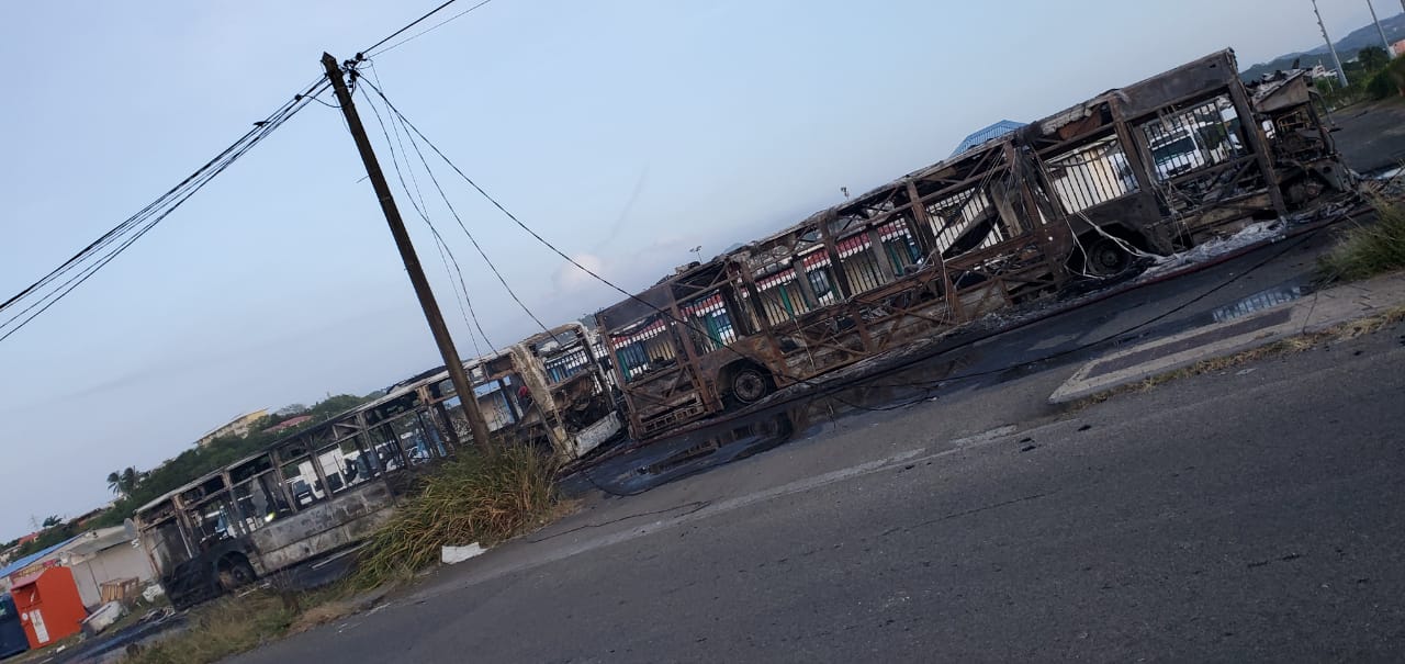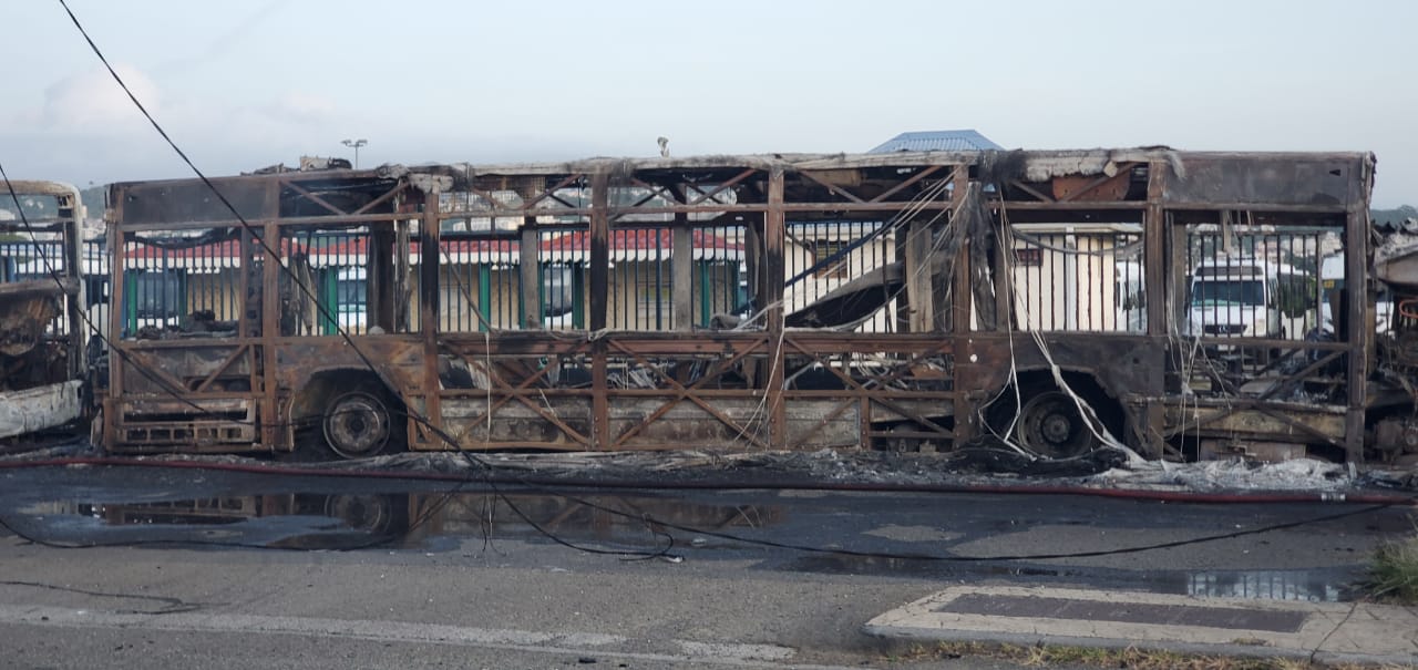 Quatre bus Mozaïk sont partis en fumée hier soir en Martinique suite à un incendie qui s’est déclaré à Dillon à Fort-de-France non loin du parc bus et devant l’hydrobase devant le grand port maritime. Au total, 5 bus ont été incendiés.