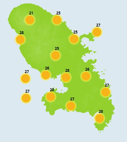 Les températures sont relativement fraîches en ce moment en Martinique. Elles varient entre 19 et 25 degrés en soirée et 21 à 28 degrés en journée. Une masse d’air en provenance du nord serait à l’origine de ce phénomène pas exceptionnel.