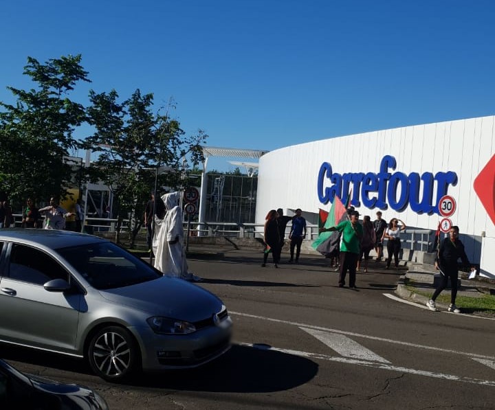 Hasard ou pas, Carrefour Génipa a décidé de faire des promotions aujourd’hui sur des télévisions, mais surtout sur le produit phare de chez nous, notamment en cette fin d’année, le champagne. Une promotion qui n’est pas passée inaperçue chez les militants ou encore chez les internautes. En tout cas, le rendez-vous avait été fixé à 7 heures 30. À suivre…