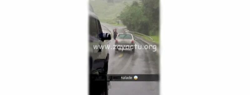 (Vidéo) Un homme roulant au milieu de la RN5 entre Ducos et Fort-de-France assis sur sa portière