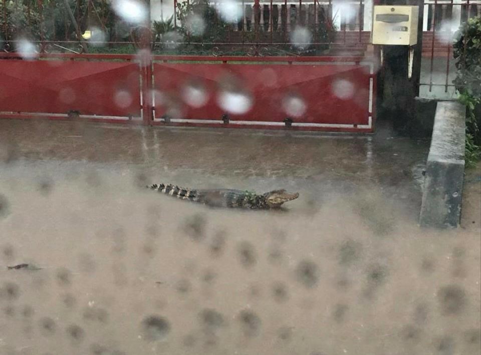 Ce mardi matin, un caïman a fait son apparition devant le lotissement…