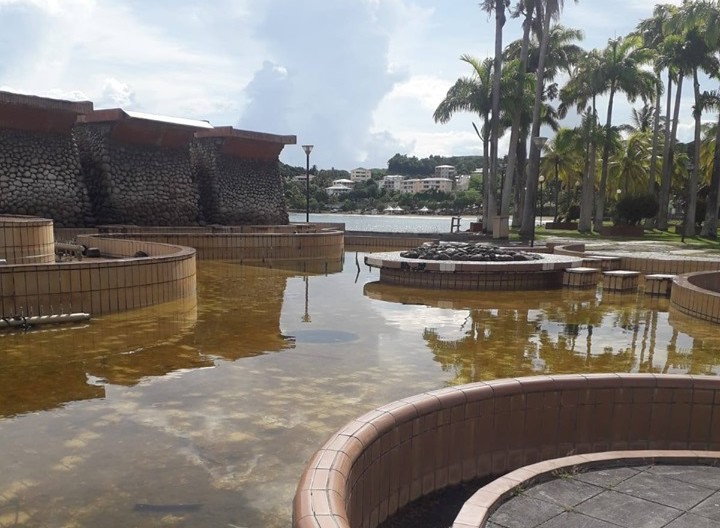 Les trois fontaines d'eau sur la place du jet d'eau situées sur…