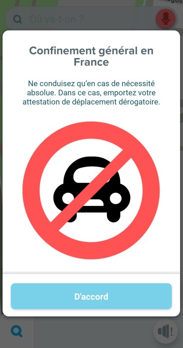 Dans ce contexte particulier, l’application mobile Waze s’adapte elle aussi. En effet, il n’est plus possible à ce jour de voir les différents contrôles de police. S’il est toujours possible de les signaler, ils n’apparaîtrons pas sur la carte. Une manière de pas gêner l’action des forces de l’ordre de manière à limiter la propagation du coronavirus.